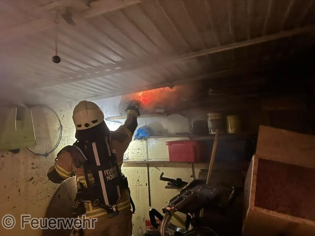 Brand Mülltonne in einer Garage