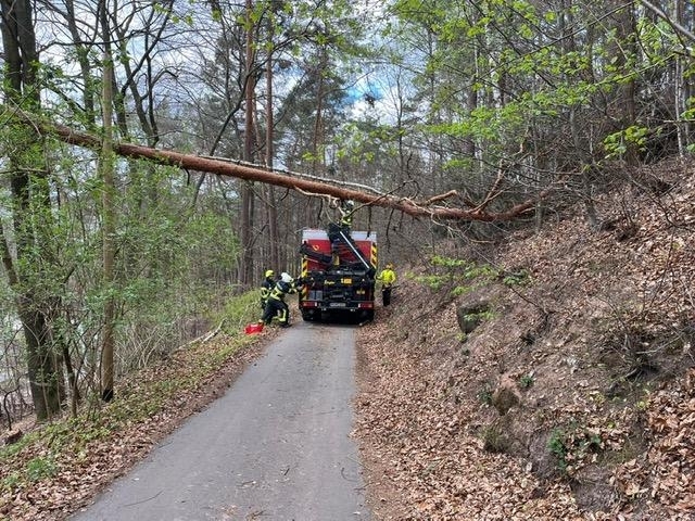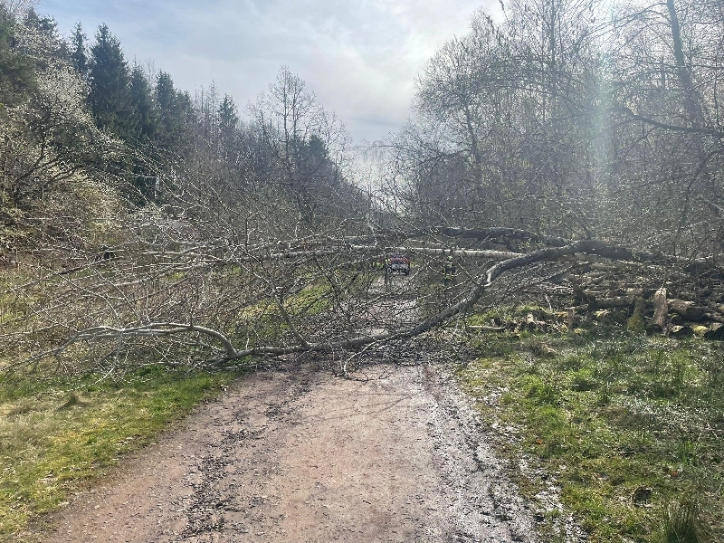 Einsatzbericht Fünf Bäume waren auf einem Weg umgestürzt. Diese wurden mit der Kettensäge beseitigt.