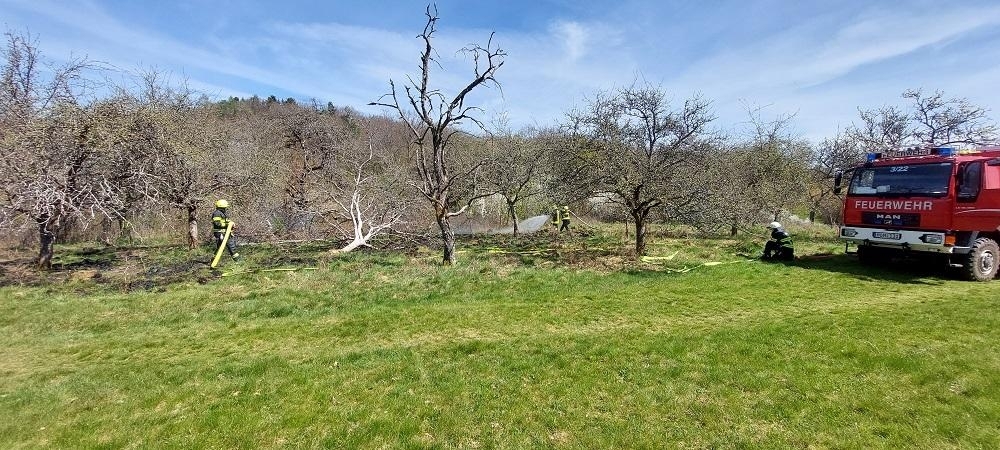 Eine Fläche von rund 50 m² brannte. Mit zwei C-Rohren wurde das Feuer gelöscht.
